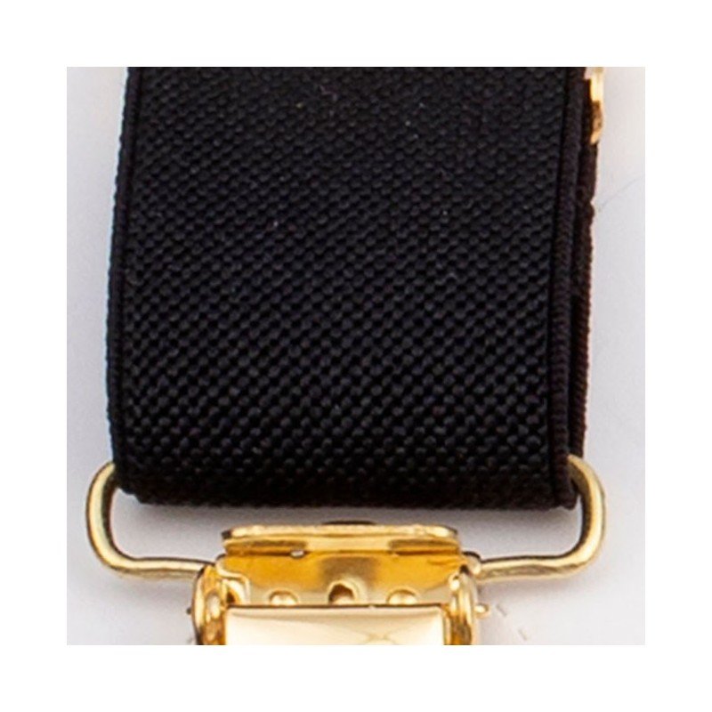 Rupture de stock BRETELLES À CLIPS Bretelles 14 noir petits points blancs 59,00 € Bretelle montée sur attache-clip doré ou argenté, de très belle qualité. Montage dos en triangle doré ou argenté assorti à la couleur des attaches clip. Attache-clip robuste offrant un bon maintien de la bretelle au pantalon. Ruban élastique fantaisie. Existe en version XL Fabrication française Voir