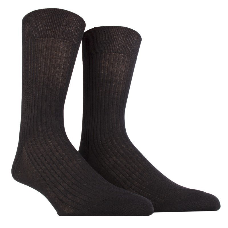 Chaussette homme - Pur fil d'Écosse à côtes - Bord côte souple.